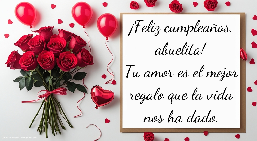Sorprende a tu abuela en su día especial con palabras llenas de ternura y cariño. Aquí encontrarás una hermosa colección de imágenes con frases de feliz cumpleaños para abuela, ideales para expresar todo tu amor y gratitud. Cada imagen combina mensajes dulces y significativos con diseños encantadores, perfectos para compartir por WhatsApp, Facebook o imprimir en una tarjeta. Ya sea que busques una frase emotiva, divertida o religiosa, encontrarás la inspiración perfecta para hacer sonreír a tu querida abuela. Haz que su cumpleaños sea inolvidable con una imagen que refleje todo el amor y la admiración que sientes por ella. Porque las abuelas merecen los mensajes más bonitos y sinceros en su día.