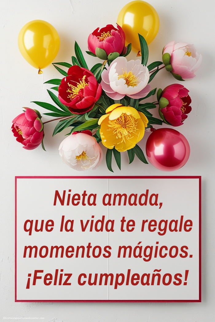 El cumpleaños de una nieta es un momento lleno de amor y alegría que merece ser celebrado con palabras y detalles especiales. En esta página encontrarás imágenes con frases de feliz cumpleaños para nieta, perfectas para compartir por WhatsApp, redes sociales o correo electrónico. Cada imagen combina mensajes tiernos y diseños coloridos, ideales para transmitir cariño, afecto y orgullo. Ya sea que busques una frase corta o un mensaje más emotivo, aquí encontrarás la manera perfecta de felicitarla y hacerla sentir especial en su día. Sorpréndela con una imagen bonita que refleje todo tu amor y haga de su cumpleaños un recuerdo inolvidable.