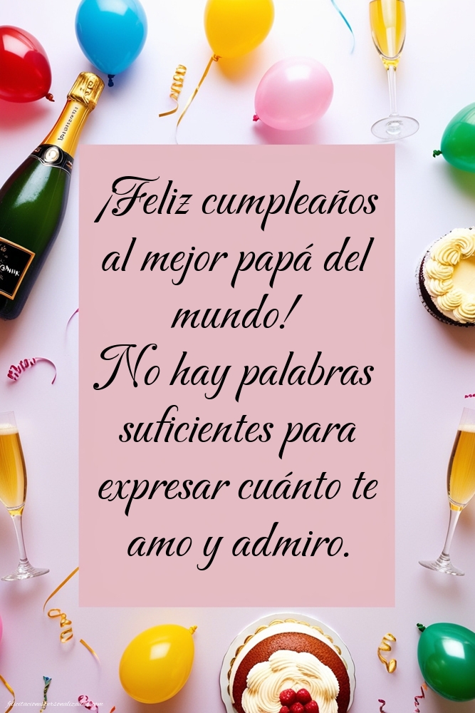 Las imágenes con frases de feliz cumpleaños para papá son una forma especial de expresar tu amor, respeto y agradecimiento hacia ese hombre que siempre te ha apoyado. Encuentra dedicatorias emotivas, frases originales y mensajes llenos de cariño para celebrar su día. Ya sea un papá cariñoso, divertido o ejemplar, estas imágenes están pensadas para transmitir lo importante que es en tu vida. Compártelas en redes sociales o envíalas directamente para alegrar su corazón en su cumpleaños.