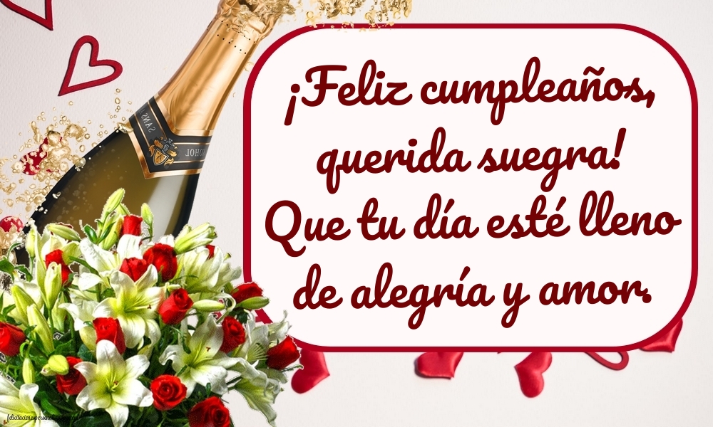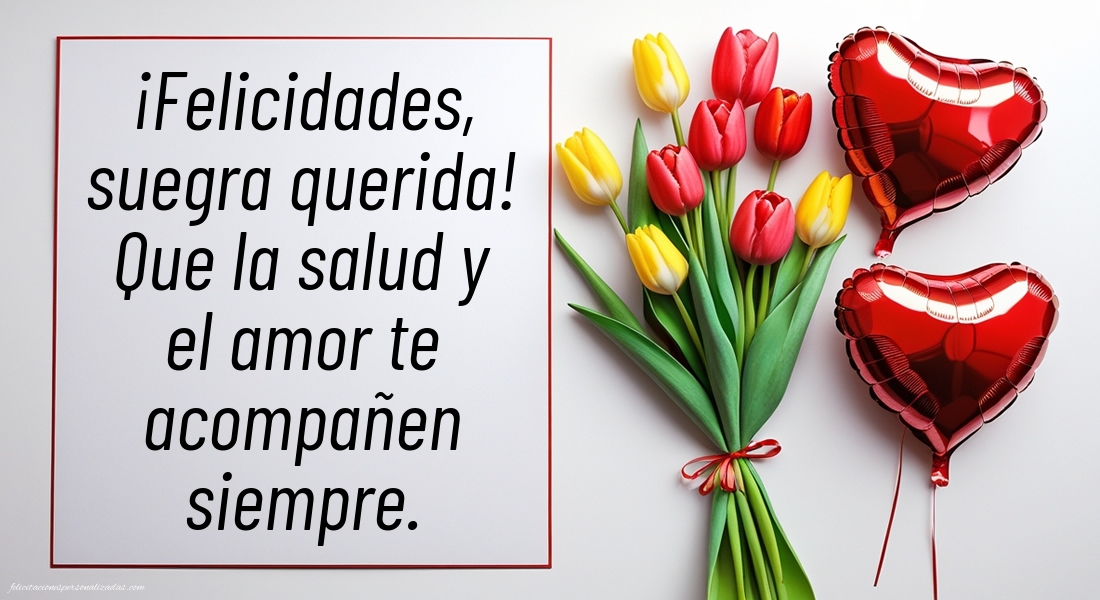 El cumpleaños de tu suegra es una ocasión perfecta para demostrarle tu aprecio y cariño. En esta página encontrarás imágenes con frases de feliz cumpleaños para suegra, ideales para compartir por WhatsApp, Facebook o redes sociales. Cada imagen combina diseños elegantes y mensajes afectuosos, perfectos para expresar gratitud, respeto y buenos deseos. Ya sea que busques una frase tierna, divertida o llena de amor, aquí encontrarás la manera ideal de felicitarla y hacerla sonreír en su día. Sorprende a tu suegra con una imagen especial que refleje tu cariño y celebra junto a ella un cumpleaños lleno de alegría y afecto familiar.