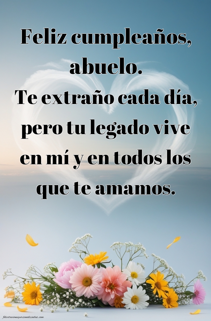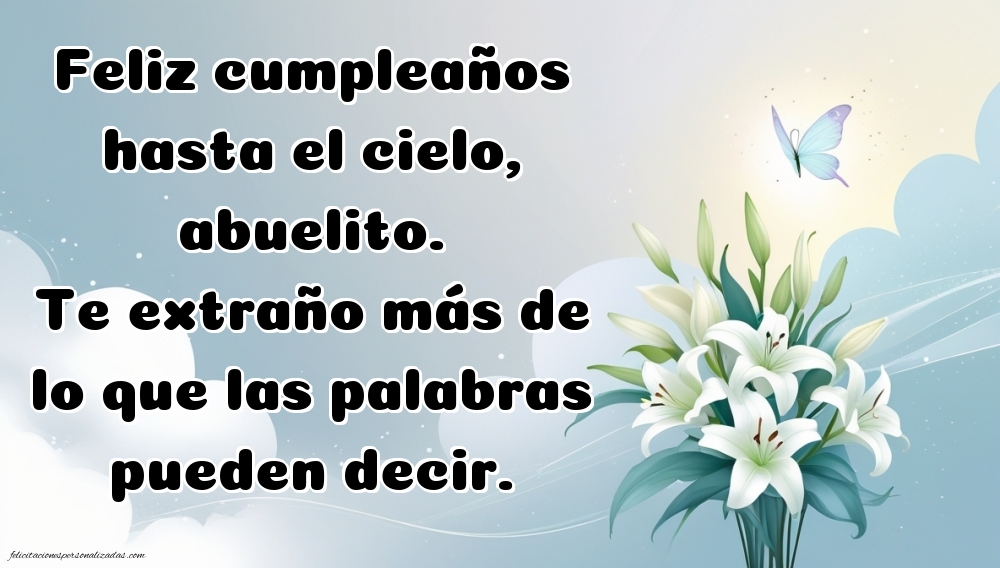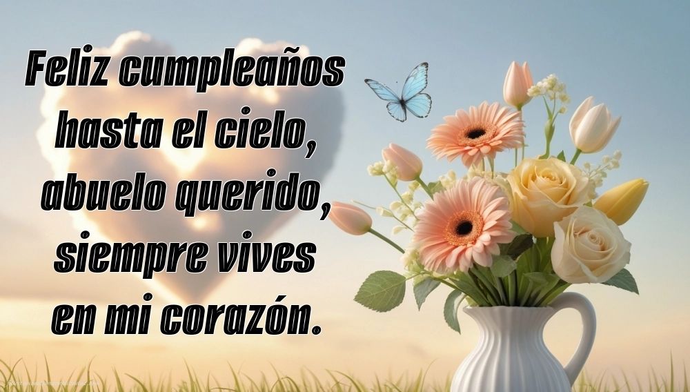 Rinde un homenaje lleno de ternura con estas imágenes de Feliz Cumpleaños hasta el Cielo para tu abuelo. Cada imagen está pensada para transmitir todo el amor, la gratitud y la nostalgia hacia ese abuelo que siempre vivir á en tu corazón. Encuentra aquí frases conmovedoras, paisajes celestiales, velas encendidas, ángeles y flores, ideales para recordar a tu abuelo en su cumpleaños. Aunque no esté físicamente, su sabiduría, su sonrisa y sus enseñanzas siguen siendo una luz en tu vida. Estas imágenes son una forma dulce de decir: “Feliz cumpleaños hasta el cielo, abuelo querido. Siempre te recordaré.”