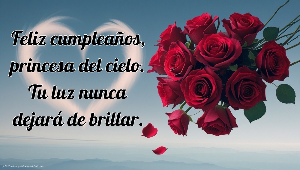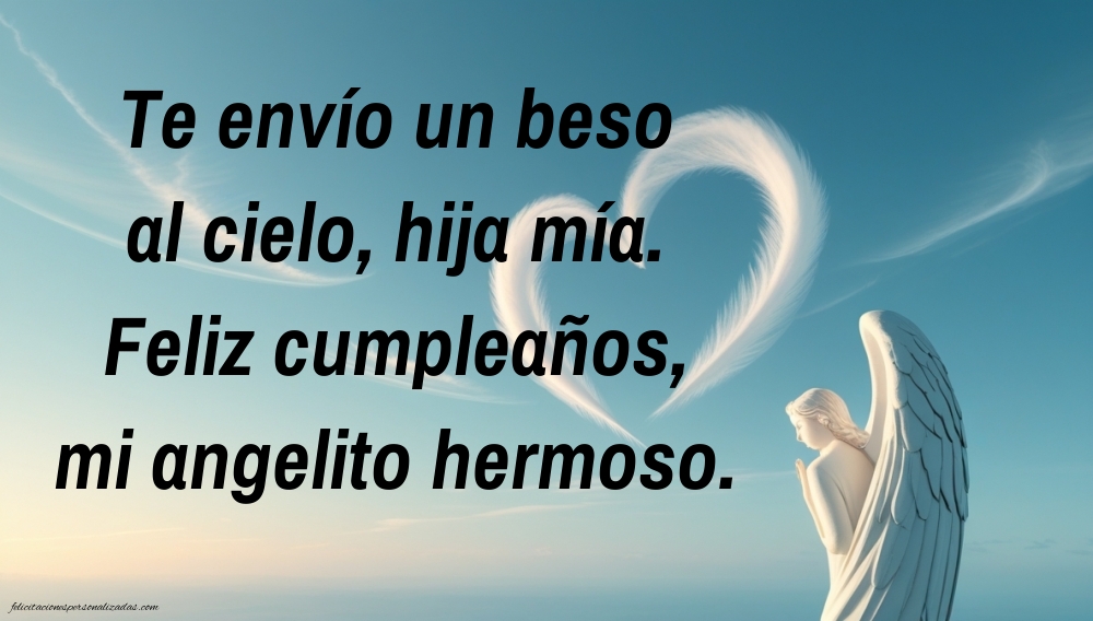 Las imágenes de feliz cumpleaños hasta el cielo para hija son una forma conmovedora de recordar y honrar a esa hija que ya no está físicamente, pero siempre permanece en el corazón. Estas imágenes incluyen mensajes llenos de amor, nostalgia y gratitud, permitiéndote expresar tus sentimientos y celebrar su memoria en su cumpleaños. Perfectas para enviar por redes sociales, WhatsApp o acompañar un detalle simbólico, ayudando a mantener vivo su recuerdo y el cariño eterno hacia ella.