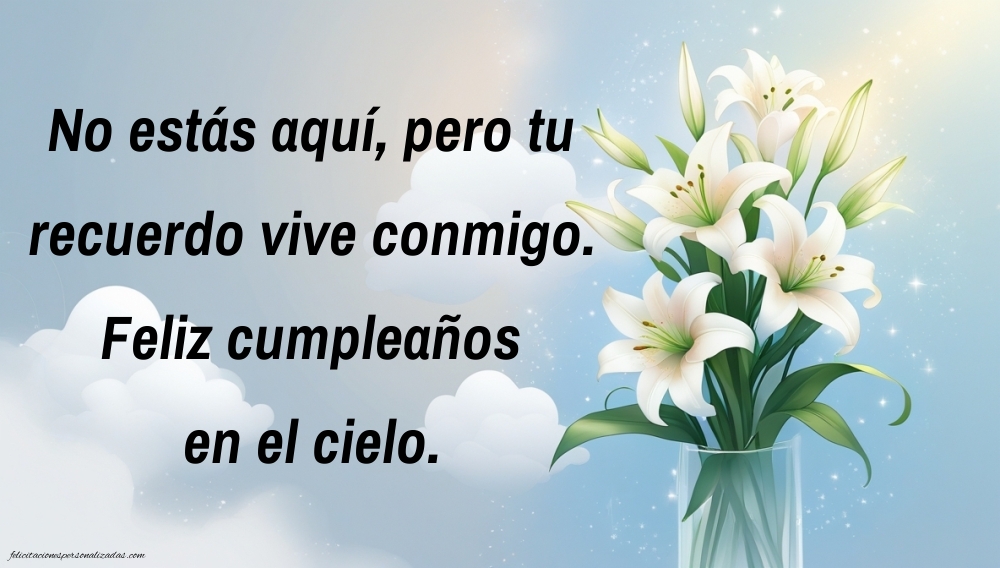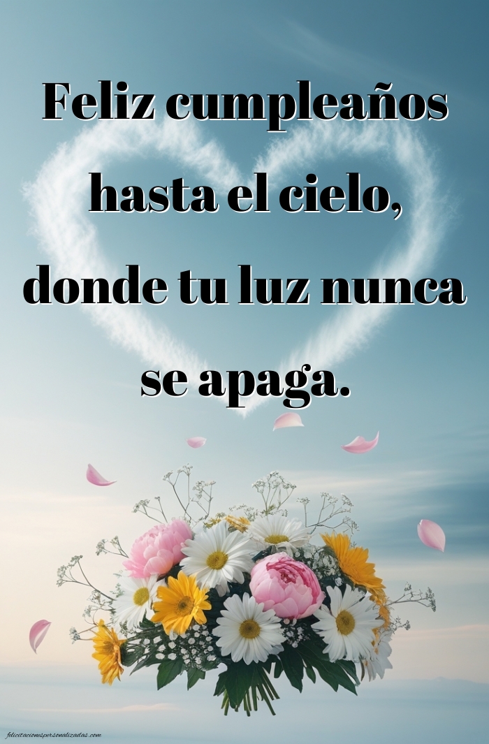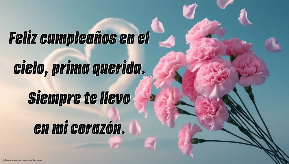 Aunque tu prima ya no esté contigo, su recuerdo vive en tu corazón. Aquí encontrarás imágenes de feliz cumpleaños hasta el cielo para una prima, llenas de amor, ternura y gratitud. Cada imagen combina frases emotivas con diseños delicados, ideales para expresar tus sentimientos, recordar su sonrisa y celebrar su vida. Puedes compartirlas en redes sociales, dedicar un mensaje simbólico al cielo o guardarlas como un homenaje lleno de cariño. Estas imágenes te ayudarán a mantener viva su memoria y a enviarle un “feliz cumpleaños” lleno de luz y amor, allí donde esté. Porque los lazos familiares no se rompen, sino que permanecen eternos en el corazón.