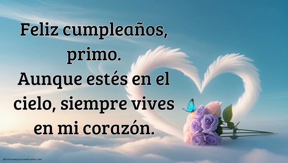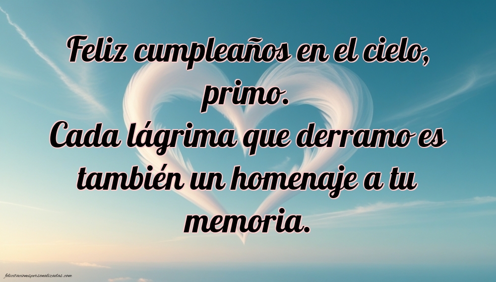 Aunque tu primo ya no esté físicamente, su recuerdo vive para siempre en tu corazón. Aquí encontrarás imágenes de feliz cumpleaños hasta el cielo para un primo, con mensajes llenos de cariño, fe y gratitud. Cada imagen combina palabras tiernas y significativas con diseños llenos de luz, ideales para dedicar en redes sociales o guardar como homenaje personal. Estas frases e imágenes te ayudarán a expresar cuánto lo extrañas, a celebrar su vida y a enviarle un mensaje de amor hasta el cielo. Porque un primo es más que familia: es un amigo del alma, y su recuerdo merece un “feliz cumpleaños” lleno de ternura, paz y esperanza.