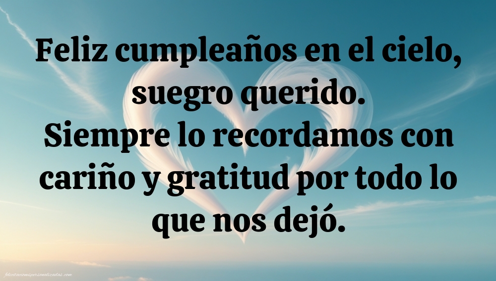 Envía un mensaje lleno de luz diciendo “feliz cumpleaños hasta el cielo, suegro querido”, y recuerda que el amor trasciende la distancia y el tiempo. Porque aunque ya no esté aquí, su recuerdo sigue iluminando tu corazón con cada pensamiento y cada oración.