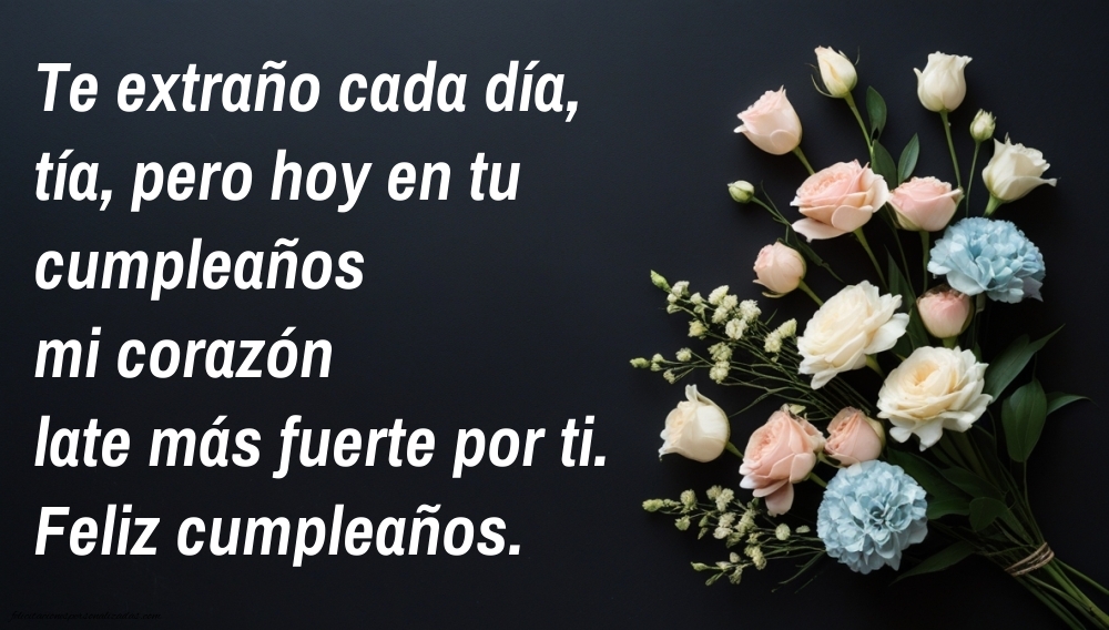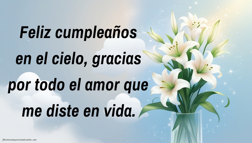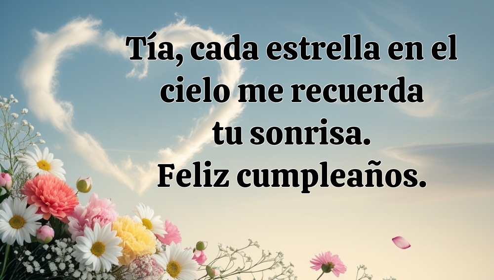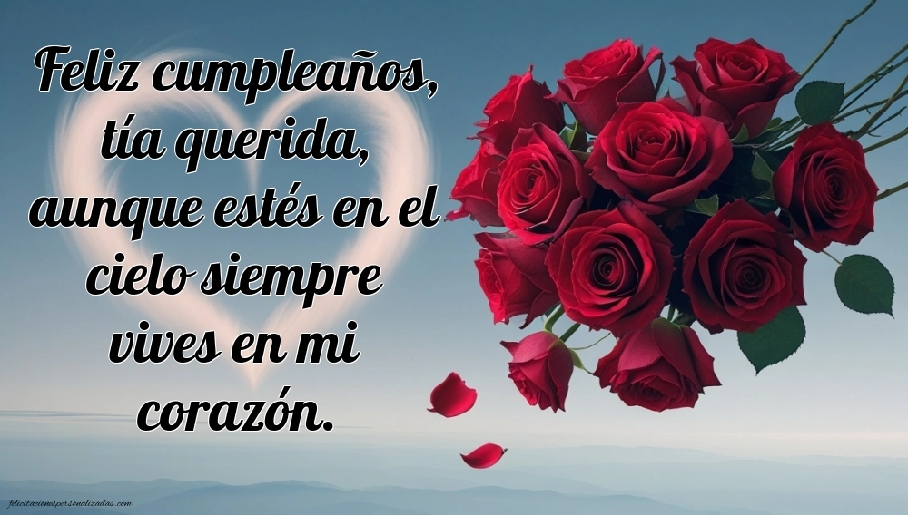 Aunque tu tía ya no esté físicamente contigo, su amor y su recuerdo siguen vivos en tu corazón. En esta página encontrarás imágenes de feliz cumpleaños hasta el cielo para una tía, llenas de cariño, gratitud y esperanza. Cada imagen combina frases emotivas con diseños delicados, ideales para compartir en redes sociales, dedicar al cielo o conservar como homenaje personal. Son mensajes que transmiten todo el amor que aún sientes y celebran su vida con dulzura y respeto. Envía un “feliz cumpleaños hasta el cielo” lleno de luz y amor, recordando a esa tía especial que siempre formará parte de tu vida. Porque el amor verdadero nunca muere, solo se transforma en hermosos recuerdos.